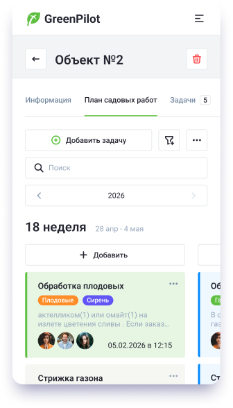 В обслуживании садов потери чаще возникают не из-за людей, а из-за отсутствия системности. GreenPilot закрывает ключевые риски: